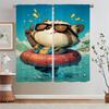 Sea Raccoon Youth Room Curtains for Living Room Fabric Curtain Tiebacks Blinds Bedroom Blackout Curtains 2 Pcs Set Curls Blind