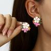 Fashion Enamel Glaze Asymmetric Stud Earrings For Women Popular Elegant White Chrysanthemum Earrings Jewelry ARI