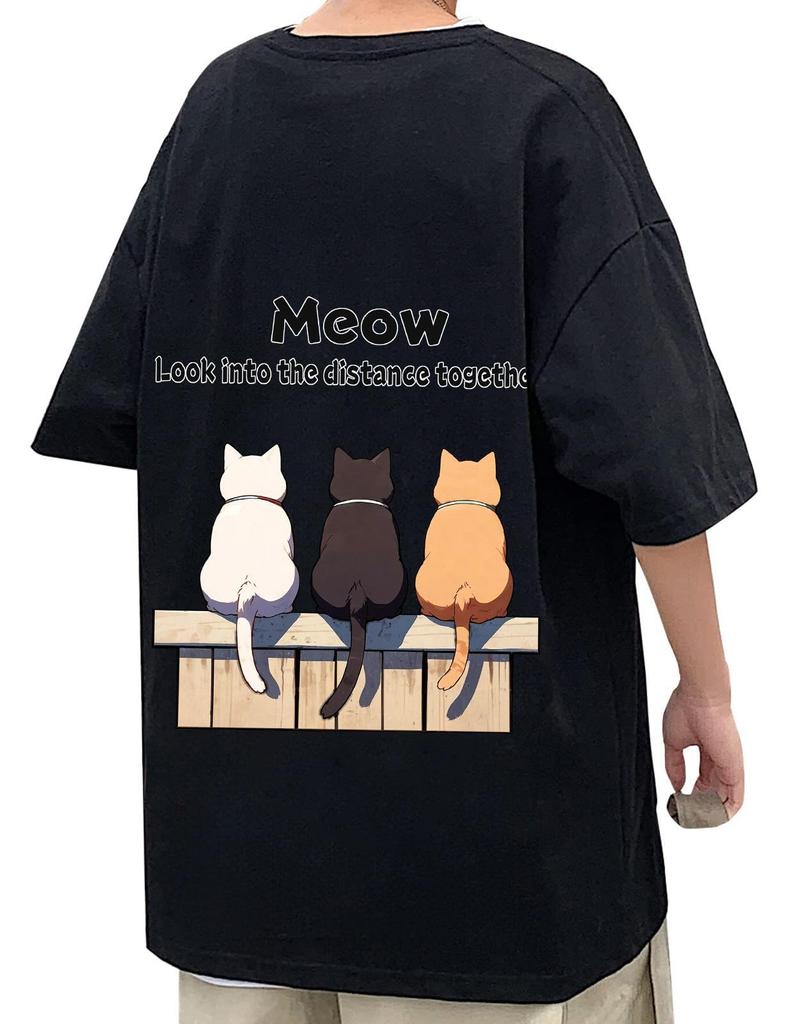 Letni krótki rękaw wzór kota miękki okrągły lato [Heone] odzież, męska koszulka, męska odzież, 100% bawełna, koszulka, lekka, sylwetka, stylowa,
