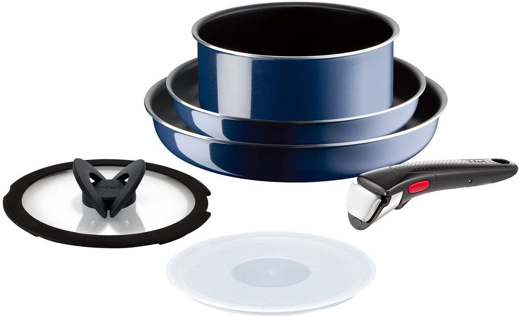 Tefal Pot and frying pan set with removable for gas fires free of harmful substances such as PFOA Neo Royal Blue blue L43790 handles, 6-piece set,