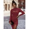 Jesienna i zimowa damska sukienka w jednolitym kolorze z wycięciem