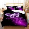 Poszwa na kołdrę 3D z motywem motyli z zapięciem na zamek fioletowy nadruk, zestaw pościeli z miękkiej mikrofibry, 3 elementy, rozmiar queen
