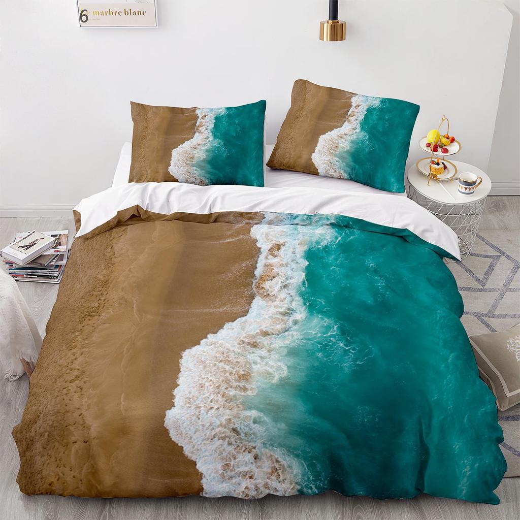 Zestaw poszwy na kołdrę z motywem oceanu, Zestawy pościeli dla dzieci z motywem plaży, Nadmorska poszwa na kołdrę, Zestawy pościeli dla nastolatków, dzieci, niebieski, rozmiar full