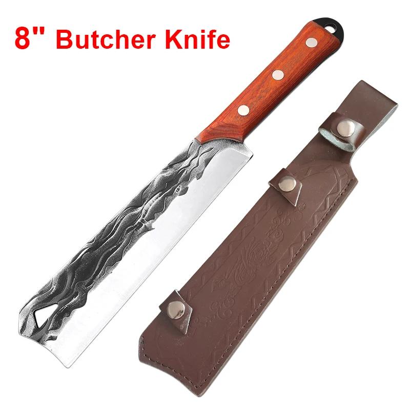 Heavy Duty Butcher Knife High Hardness Kitchen Knife High Carbon Steel Chopping Bone Meat Cleaver Cooking Knife Wooden Handle