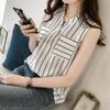 Big Size V-neck Striped Shirt Female Sleeveless Blouse Loose Thin Chiffon Lining Vintage Basic Office Casual Women Shirt Comfortable Women's Clothes