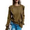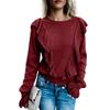 Moda Damska Jednolity Kolor Falbanki Długi Rękaw Okrągły Dekolt Pulower T-shirt Bluzka Top