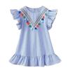 Nowa Letnia Sukienka Księżniczki w Paski z Krótkim Rękawem dla Dziewczynek - Kwiatowy Wzór w Stylu Koreańskim dla Dzieci