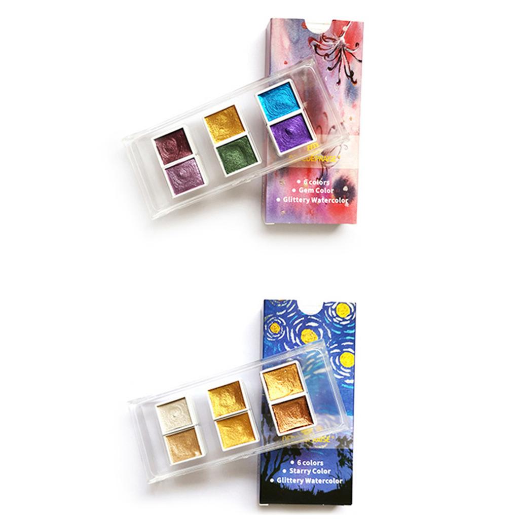Praktyczne Pigmenty Akwarelowe Brokatowe Farby Stałe 6/12 Kolorów Silne Krycie dla Uczniów Dzieci Początkujących Artystów Prezent