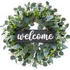 Wieniec ze sztucznego eukaliptusa 35/45cm z napisem Welcome Zielone wieńce na drzwi wejściowe Zielony wieniec z liści eukaliptusa na drzwi, ścianę, okno Dekoracja wiejska