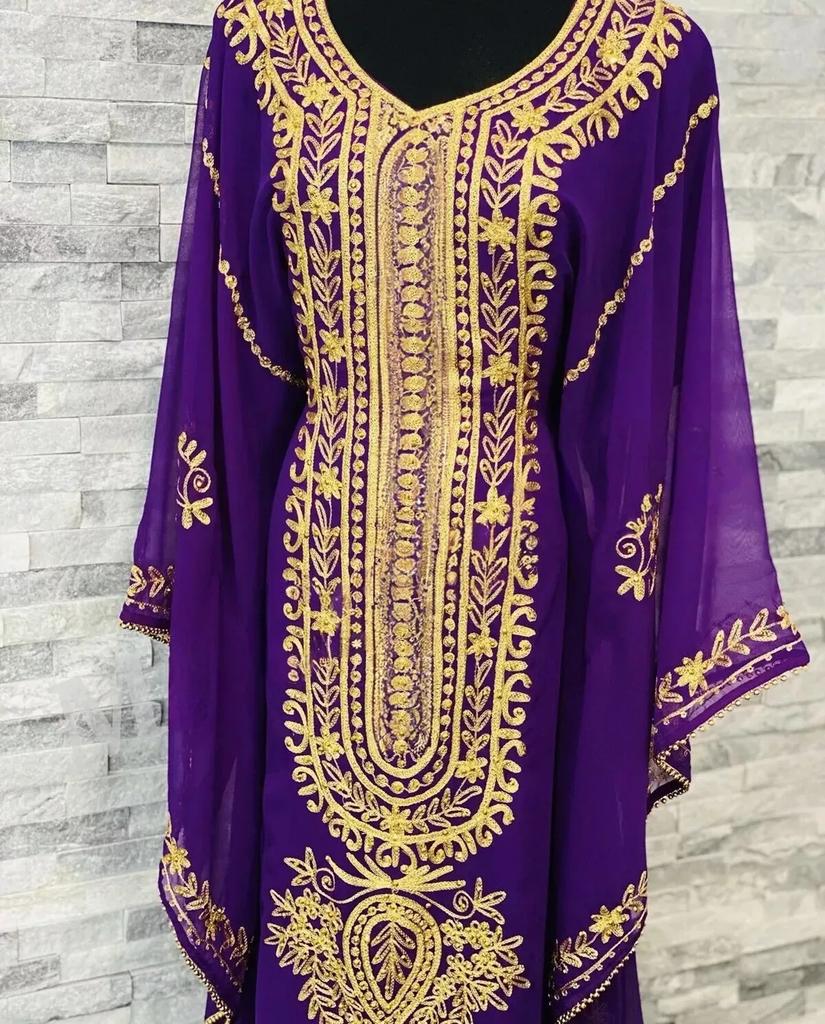 Islamic Kaftan Dubai Handmade Moroccan Stylish Georgette Gown Dress Kaftan