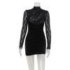 Zimowy Damski Modny Temperament Sukienka Spice Girl z Wysokim Dekoltem, Długim Rękawem i Koronkową Wstawką