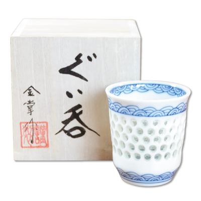Guinomi Arita Wooden Box Great as a Crystal Engraved Qinghai Made in Japan Ochoco, Ware, Gift, Gift, Wave,