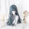 Sizuuenn Lolita Długie Włosy Kręcone Grzywka Na Bok Niebieska Peruka Popielaty Niebieski Peruka Odporna na Ciepło Włókno Wysokotemperaturowe Peruka Cosplay Dedykowana Siatka na Wydarzenia