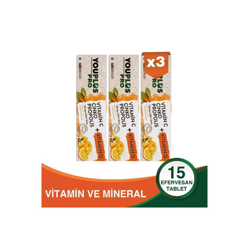 1000 mg of vitamin C, 10 mg zinc, 8 mg pure propolis and 25 pg vitamin D3 is a supplementary food. It has a 4 -effect effect with YouPlus Pro, vitamin C, zinc, propolis and vitamin D.