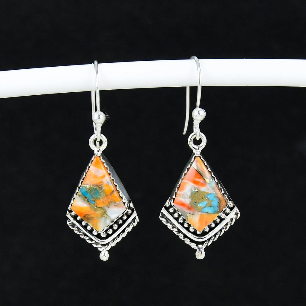 Pomarańczowa Kolczyk z Turkusem z Ostrygi Kolczastej Ręcznie Robiony Srebro Sterlingowe 925