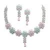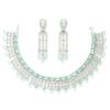 Wzbogać swoją kolekcję biżuterii tym oszałamiającym zestawem naszyjnika i kolczyków w odcieniu srebrnym, platerowanym rodem, zaprojektowanym tak, aby emanować elegancją i urokiem.. Ten wykwintny zestaw biżuterii zawiera błyszczące białe cyrkonie sześcienne diamenty amerykańskie, pięknie ułożone, aby stworzyć olśniewający efekt.. Posrebrzane rodowanie zapewnia długotrwały blask, czyniąc go idealnym dodatkiem na wesela, przyjęcia i uroczystości.