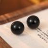 Srebrne koreańskie czarne agaty kolczyki dla kobiet - prosta, elegancka, uniwersalna, mała biżuteria