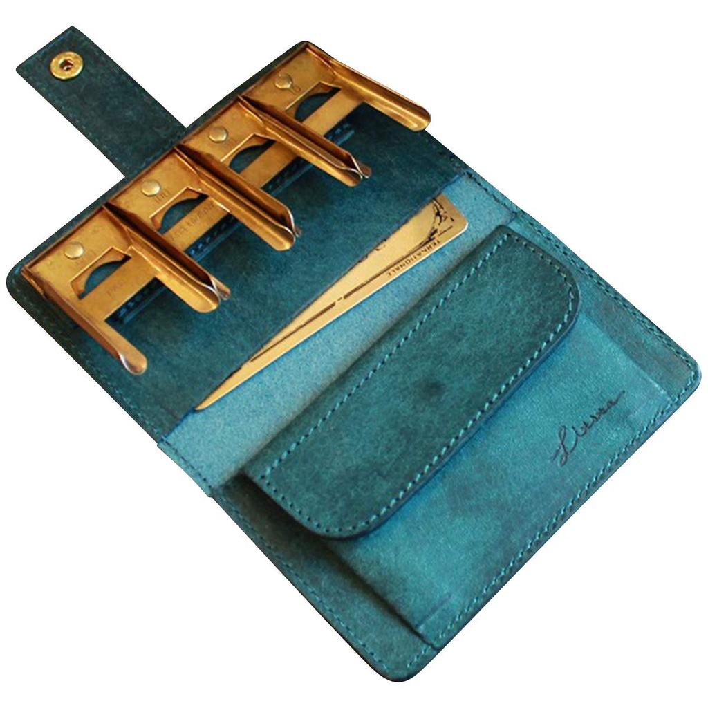 Portfel na monety2 Łapacz monet Edycja ZŁOTA Portfel na monety LITSTA Portmonetka z uchwytem na monety Włoska skóra pueblo Niebieski Zielony [LITSTA]
