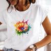 (Asian Size) Casual Women's Fashion Print Short Sleeve T-shirts watercolor flower style Clothing T Female Top Graphic Tee