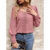 Koszula damska z okrągłym dekoltem i bufiastymi rękawami oraz dużymi kropkami i koronką