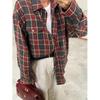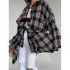 Koszula damska vintage oversize z długim rękawem w kratę bluzka topy jesień zima zapinana na guziki luźna z klapami i kieszenią koszula w stylu koreańskim