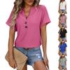 Wiosna i Lato Jednolity Kolor Dekolt w Serek Guziki Luźny Krótki Rękaw T-shirt Top Odzież Damska
