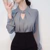 Wiosna Lato Damskie Gładkie Bluzki Koszule Szyfonowe Długi Rękaw Wyszczuplające Puste Seksowne Podstawowe Topy Cienkie Szyk Eleganckie Damskie Ins