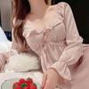 Francuska piżama damska w stylu dworskim, koszula nocna z długim rękawem, damska odzież domowa z imitacji jedwabiu, koszula nocna w stylu księżniczki, damska koszula nocna z lodowego jedwabiu