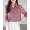 16 Color Lace Patchwork Chiffon Shirt Women Blouse Fashion Hollow Long Sleeved Top Slim OL Work Party Shirt Solid Color