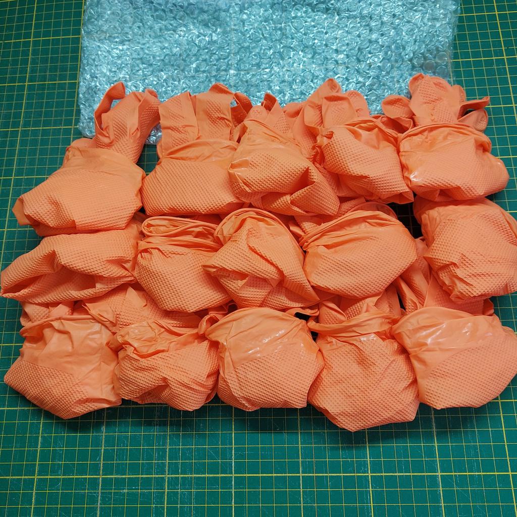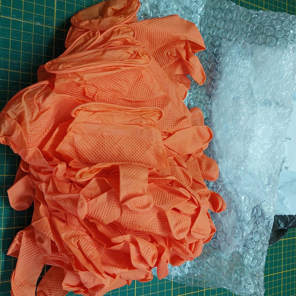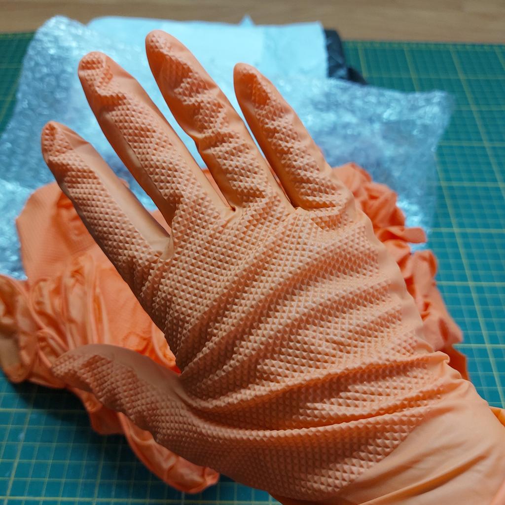 Rękawice nitrylowe, prawda, bardzo mocne, pasowały rozmiarem 👍.( M ). Kolor pomarańczowy. W sumie 10 sztuk. Kupiłam za 287 ₽.