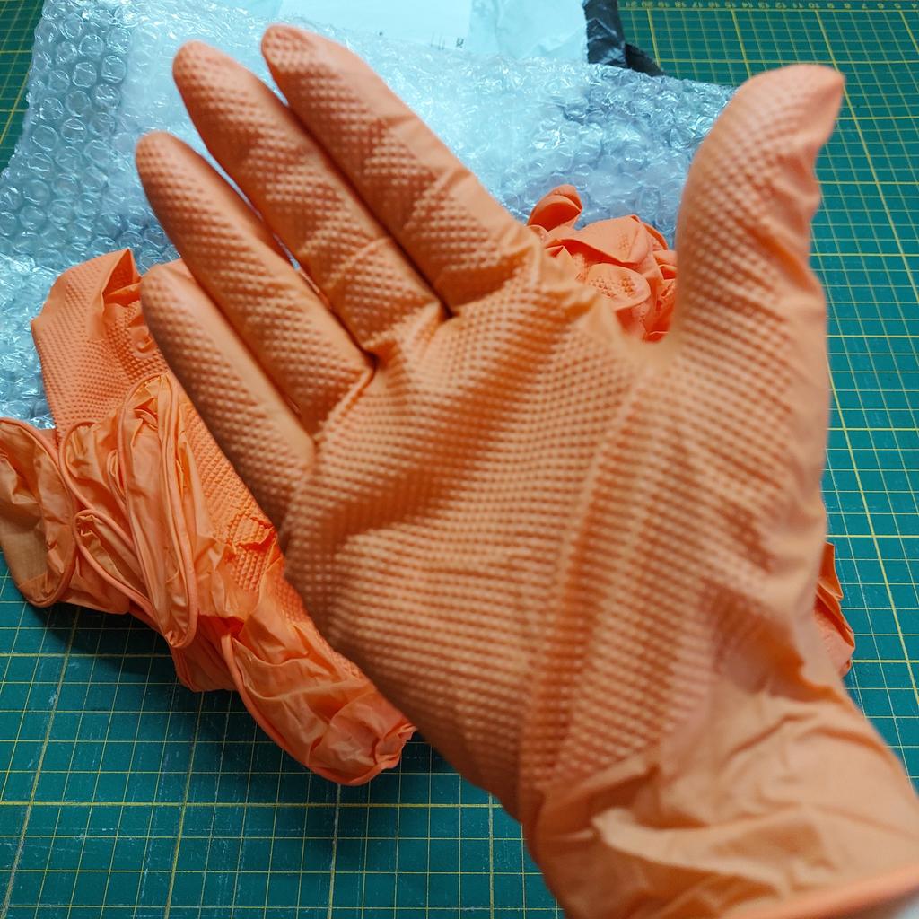 Wytrzymałe pomarańczowe rękawice nitrylowe 8Mil Przemysłowe jednorazowe rękawice z chwytem o fakturze diamentowej do ochrony mechaników i rękawic roboczych