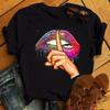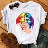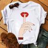 Nowe czerwone usta drukuj T Shirt kobiety T koszula moda kobieta śliczne graficzne koszulki Casual topy 90S damskie koszulki z krótkim rękawem Top