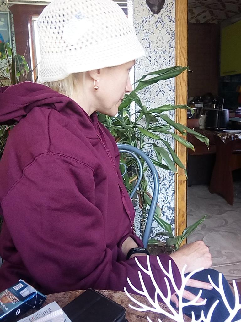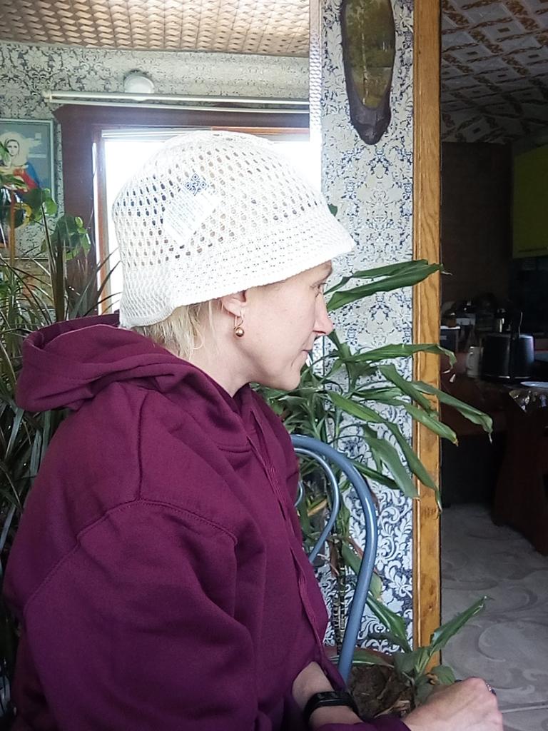Do ogrodu co trzeba. Czapeczka świetna dziergana.