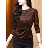 Nowy T-shirt z okrągłym dekoltem, koralikami i modny, wszechstronny, aksamitny, z długim rękawem, jako baza. Damski top typu pulower z wyższej półki.