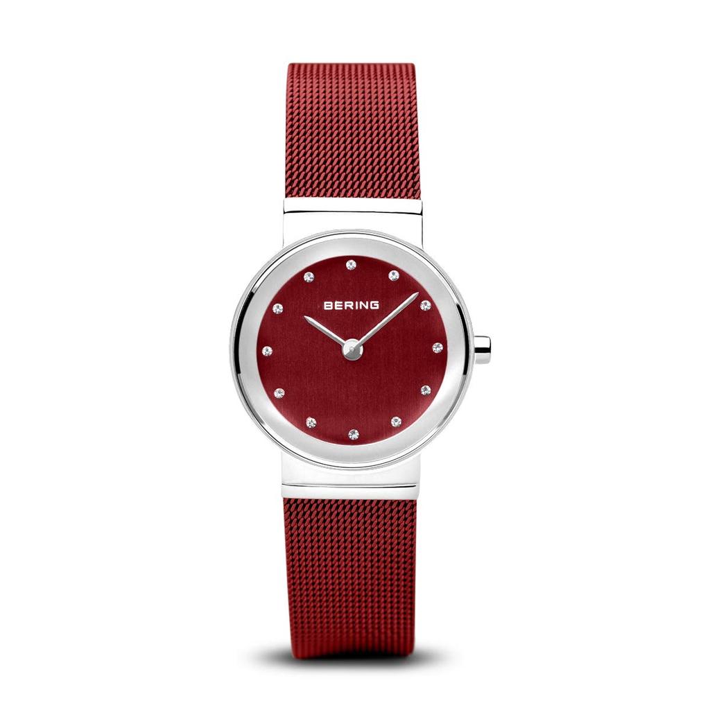 BERING Analog Quartz Classic Collection Watch Stainless Steel Strap Sapphire Crystal Red Mesh Belt x Silver Genuine Imported Product 3 Year Internal