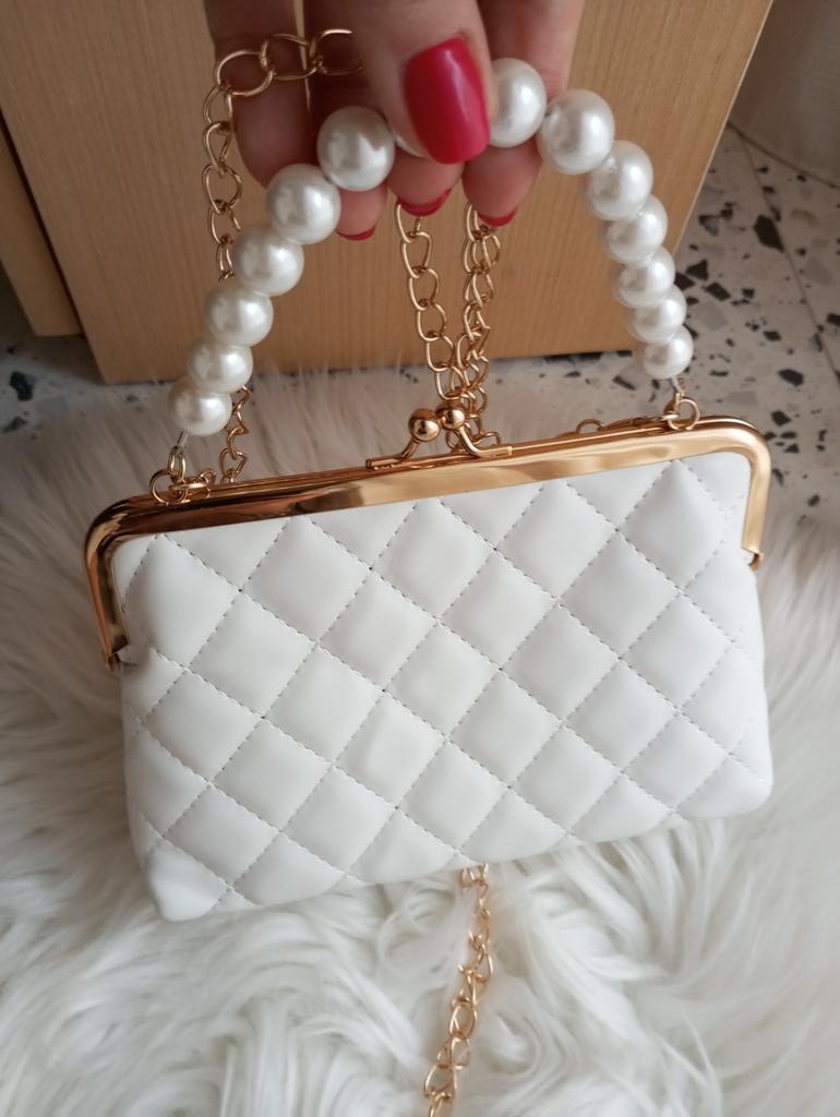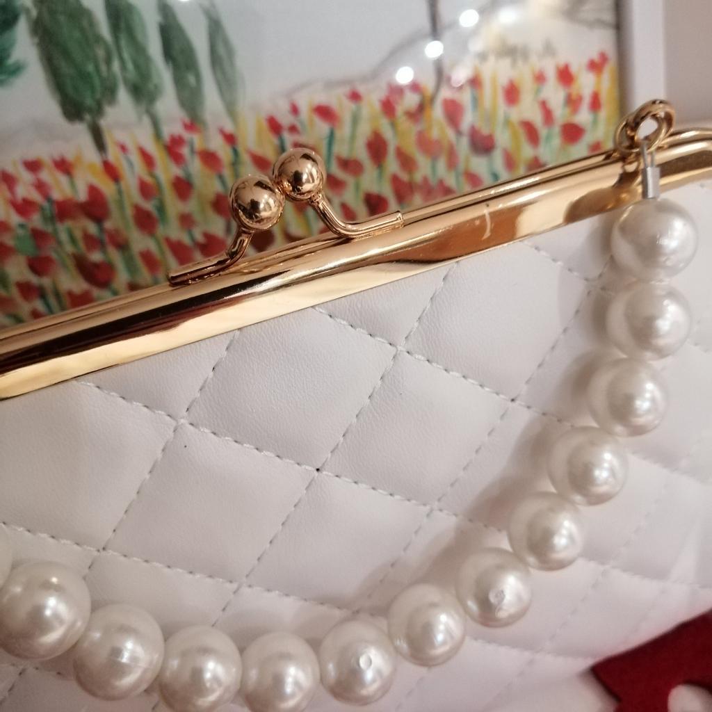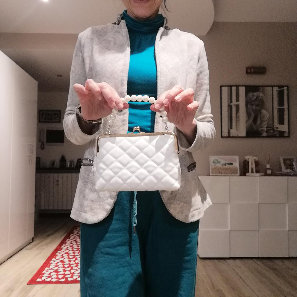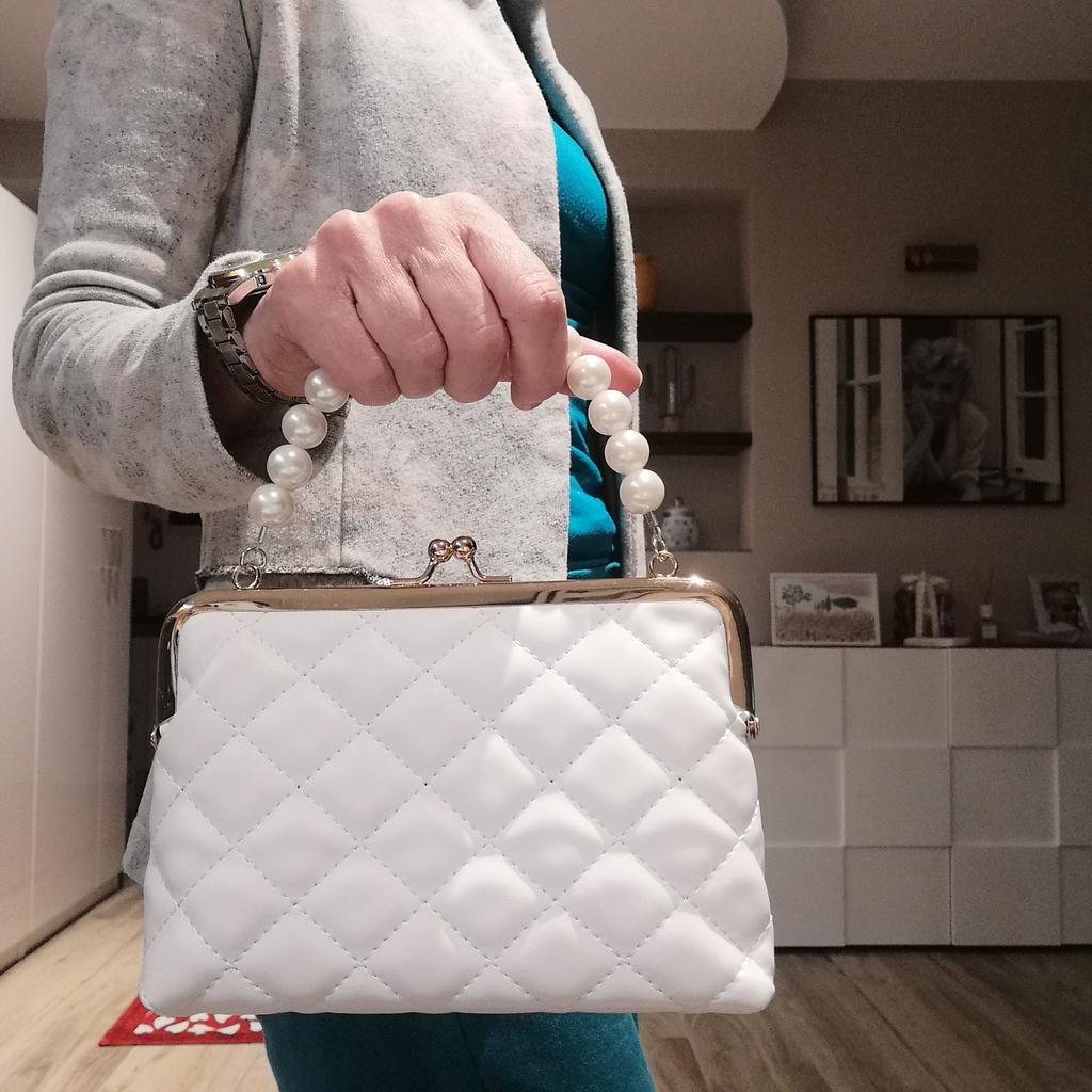 TOREBKA mała elegancka torebka, idealna na uroczystość, przyjęcie, kolację. Torba nie posiada kieszeni wewnętrznych, jest podszewkowana. zapięcie metalowe w kolorze złotym. Dostępne w 5 kolorach, Materiał: pikowany poliuretan. Super szykowny detal: perłowa rączka... Piękna 😍😍😍 Szwy są schludne, bez nieprzyjemnych zapachów. Jeśli wolisz bez paska, możesz także kupić mały, odpinany, złoty pasek na ramię.. Dotarło do Włoch w ciągu 21 dni z przesyłką śledzoną. Opakowanie: folia celofanowa. Zalecany zakup. Doskonały stosunek jakości do ceny.