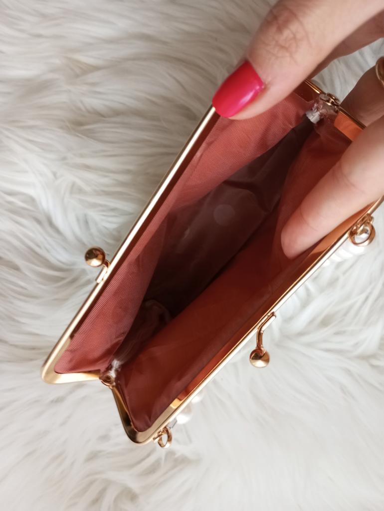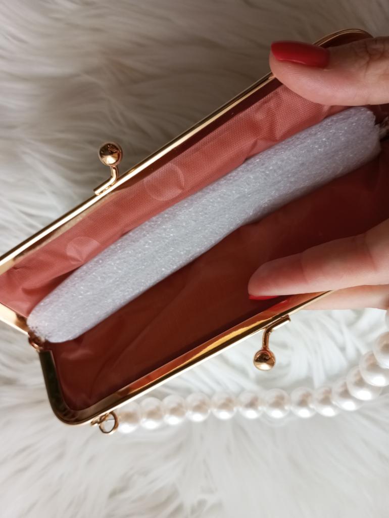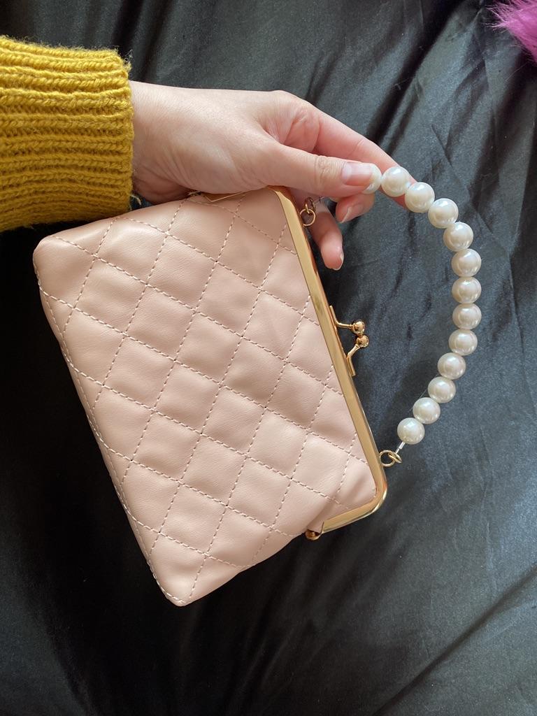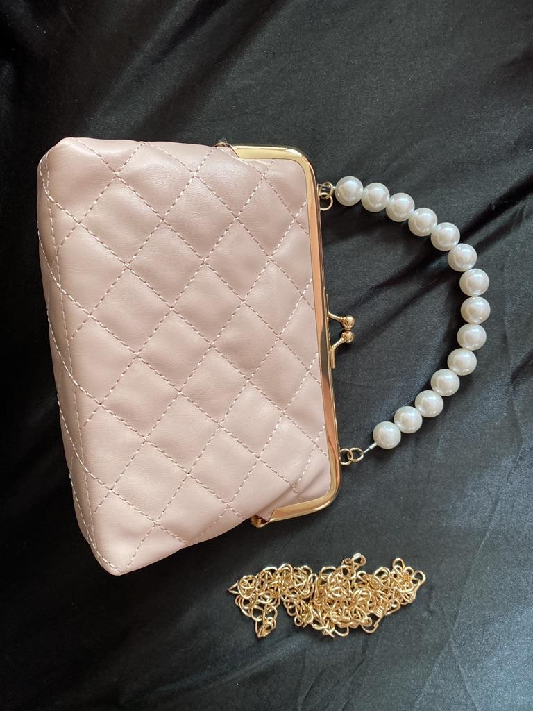Bardzo ładna różowa torebka z perłami. Torebka ma także złoty pasek, ale nie jest on wcale konieczny. Wygląda jak na zdjęciu producenta, choć wydawało mi się, że na zdjęciach koraliki są mniejsze, ale w rzeczywistości są dużo większe.