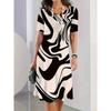 Damska sukienka mini z krótkim rękawem, okrągłym dekoltem, geometrycznym nadrukiem, dopasowana