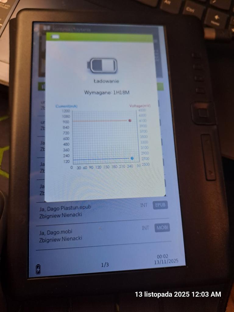 Czas ładowania (5V, 500mA): 10 godzin (o)