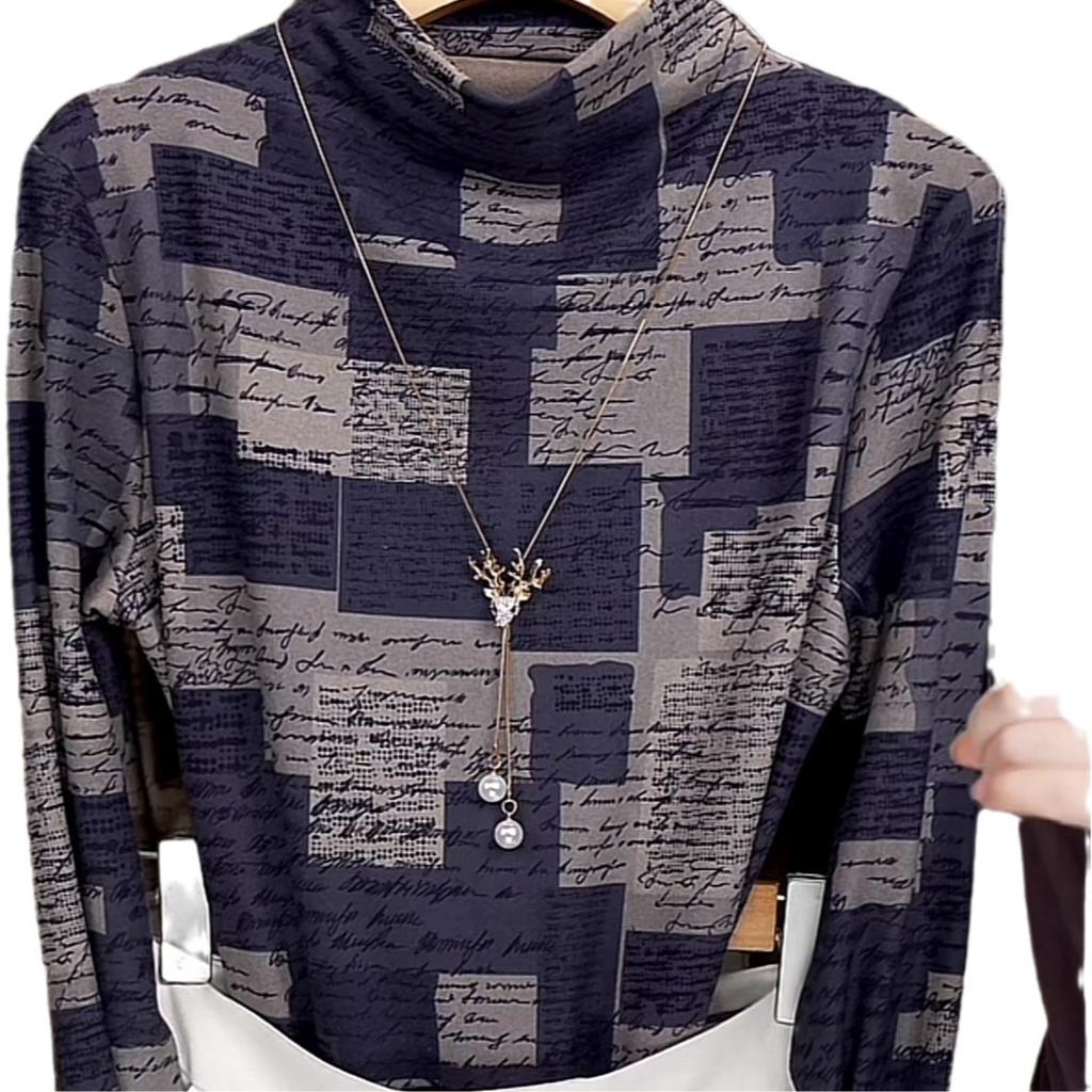 Nowy Aksamitny Pogrubiony Uniwersalny Wyszczuplający Temperamentowy Design Bluzka Podstawowa Półgolf T-shirt Top dla Kobiet