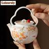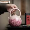 100 ml ręcznie robiony różowy Ru Kiln Teapot Peony Flower Mouth Hand Grasp Pot Tea Maker Kettle Women Teaset Akcesoria Dekoracja