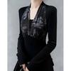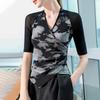 Irregular V-neck Top Women's High-end Slim-fitting Women's Small Shirt Printed Temperament Medium-sleeved T-shirt