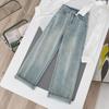 Letnie spodnie casualowe z wysokim stanem, luźne, z szerokimi nogawkami