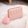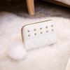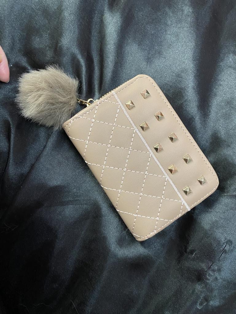 Materiał o wysokiej jakości zewnętrznej jest trwały, odporny na zarysowania i zużycie, zachowując swój wygląd przez długi czas. Posiada gładką i przyjemną w dotyku powierzchnię. Wewnętrzna miękka podszewka z materiału zapewnia delikatną ochronę kart i banknotów, zapobiegając ich uszkodzeniu. Złote metalowe ćwieki i zamek błyskawiczny wykonane są z wysokiej jakości metalu, odpornego na rdzę i zachowującego połysk. Zawieszka w kształcie pompona wykonana jest z miękkiego, puszystego materiału, który niełatwo się zgubić.