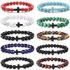 Modlitwa Mężczyźni Naturalny Kamień Drewniane Koraliki Różaniec Hematyt Krzyż Bransoletki Onyks Medytacja Bransoletka Kobiety Joga Biżuteria Homme Pulsera