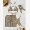 Dwuczęściowy strój kąpielowy Bikini z nadrukiem w paski Cztery elementy Kostium kąpielowy Kobiety Kostium kąpielowy Damskie Bikini I Spódniczka plażowa Stroje kąpielowe Odzież plażowa Swim