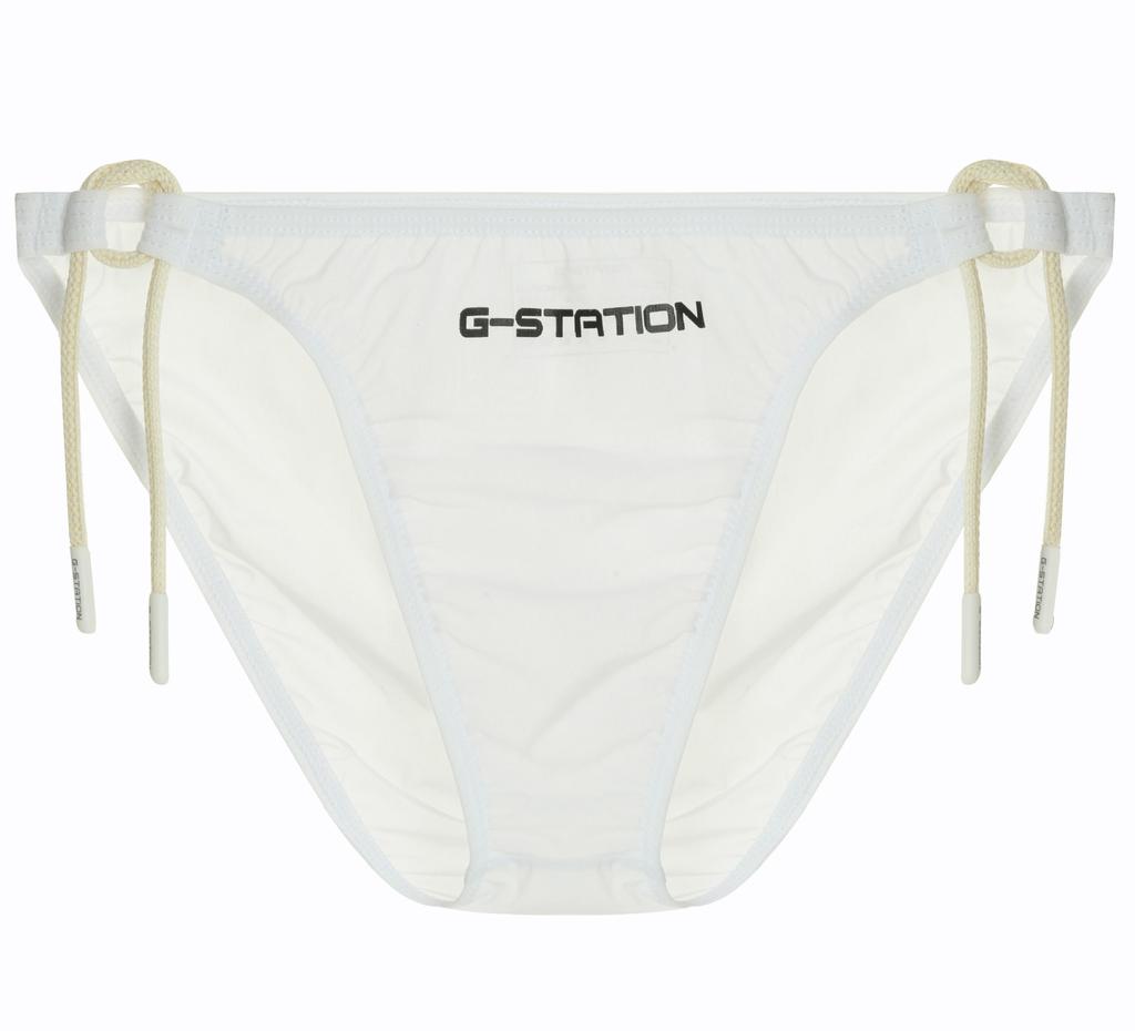 Bikini-style swimwear with attractive ultra-thin fabric and lace-tied sides. This item uses G-Station's new series "STC" fabric. Sexy swimwear that is thin, beautifully transparent, and stretchy, yet resistant to friction, tear-resistant, and easy to handle. It has a smooth, moist feel that sticks to the skin and is comfortable to the touch. The lightweight and ultra-thin fabric has a strong sheer feel even in dark colors, giving you an open and sexy feel. When it gets wet, it becomes even more transparent. As the unevenness of the body tends to stand out, please use an inner supporter for swimming as appropriate depending on the usage situation. When using it in a public place, please wear it in advance to check the transparency. Both sides are tied with strings with the G-Station logo, allowing for size adjustment. The front has a flat shape and is made of single layer fabric. The back is a full back style.