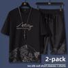 Letni męski strój sportowy Unikalny Wszechstronny Modny Studencki Koszulka z lodowego jedwabiu Krótki rękaw Zestaw 2-częściowy Luźny krój Zestaw 2-częściowy