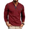 European and American Style Men's Henry Shirt Long Sleeve T-shirt Spring Autumn Color-block Knitted Button Top