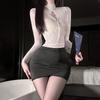 Domila's New Stewardess Secretary Hip Skirt Is Passionate and Seductive, Sexy Hollow Uniform, No Small Chest Open Uniform